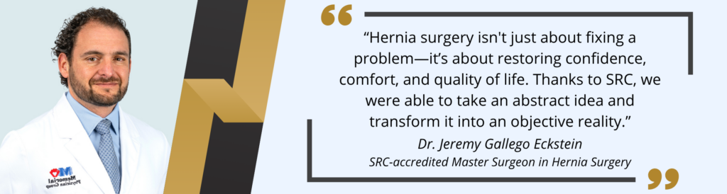 Dr. Eckstein shared, “Hernia surgery isn’t just about fixing a problem—it’s about restoring confidence, comfort, and quality of life. Thanks to SRC, we were able to take an abstract idea and transform it into an objective reality.”