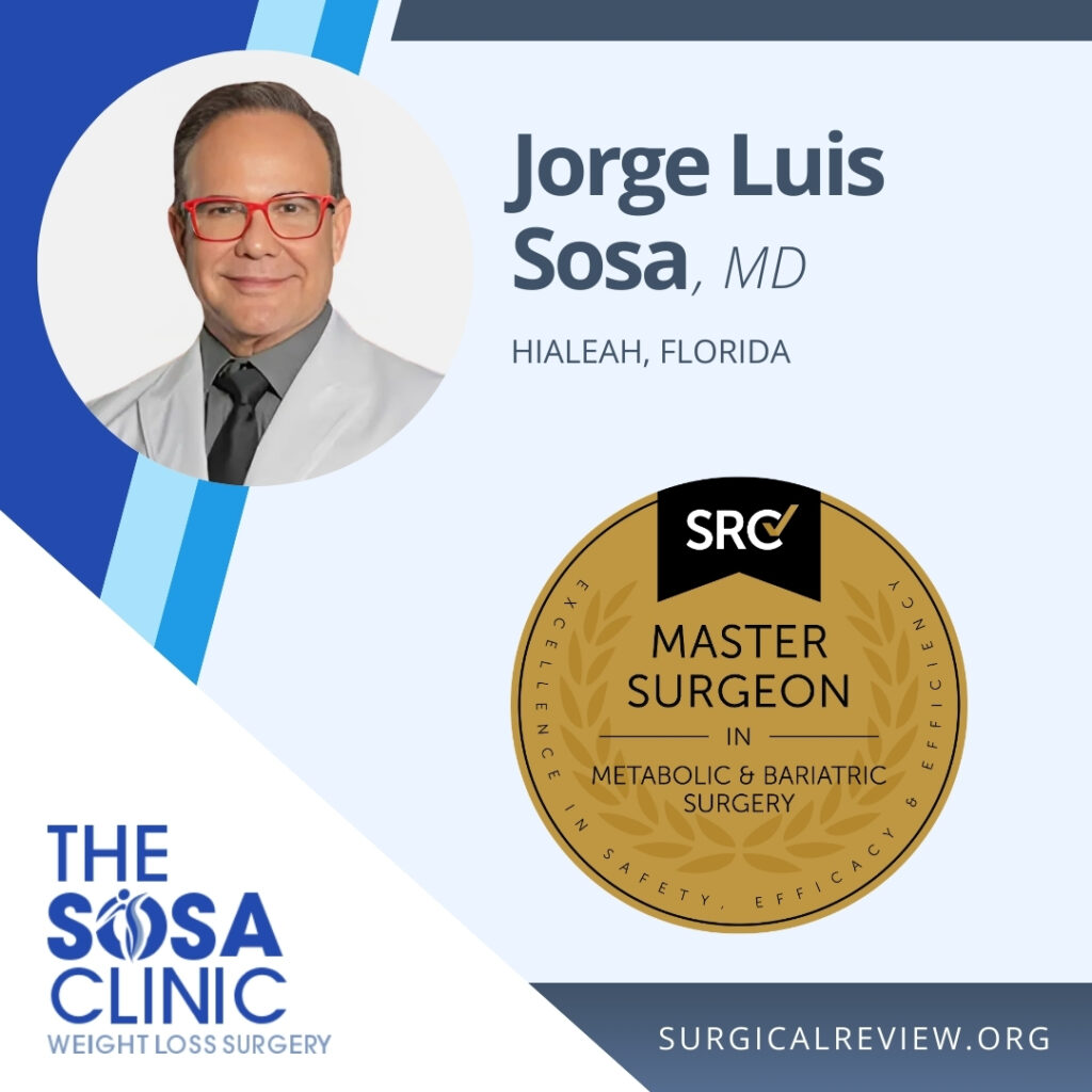 Jorge Luis Sosa, MD has been accredited as an SRC Master Surgeon in Metabolic and Bariatric Surgery. Dr. Sosa practices at Palmetto General Hospital and The Sosa Clinic in Hialeah, Florida.