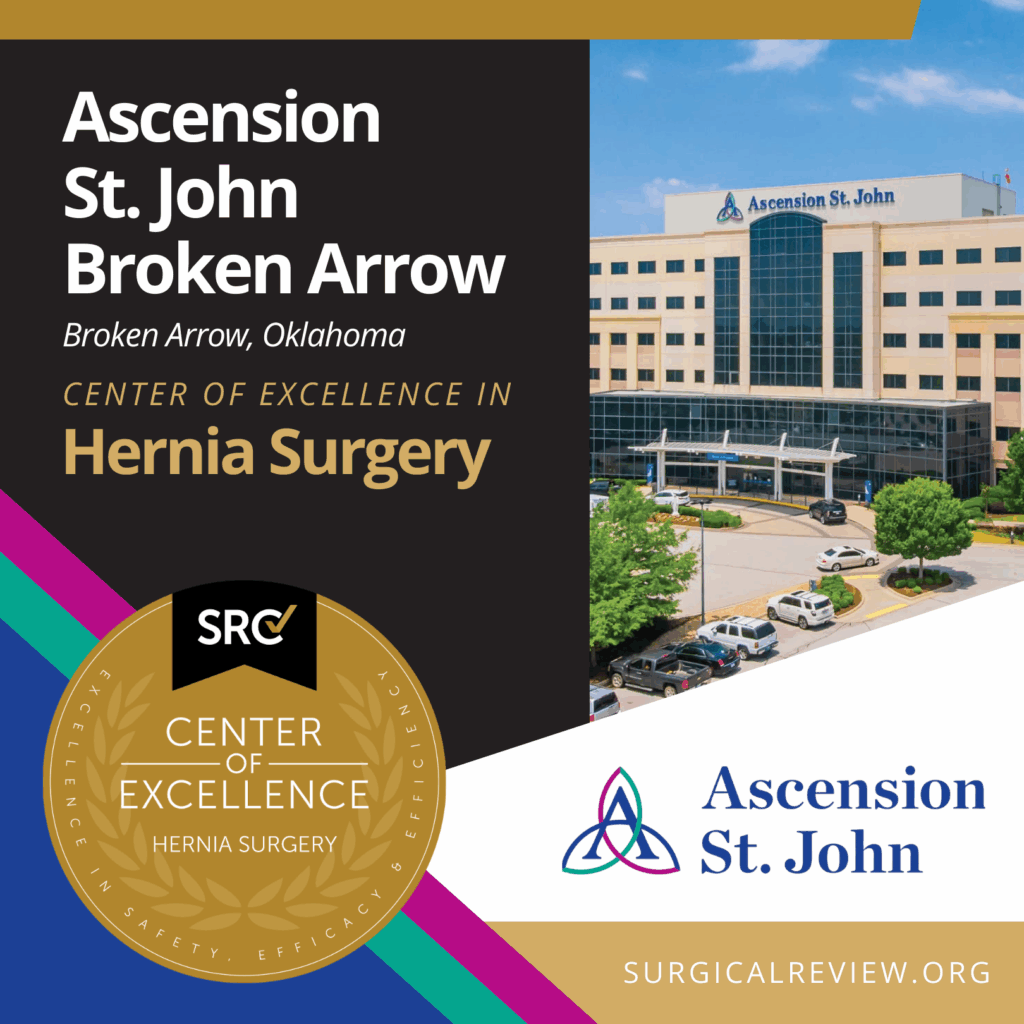 Ascension St. John Broken Arrow in Broken Arrow, Oklahoma has been accredited as an SRC Center of Excellence in Hernia Surgery.