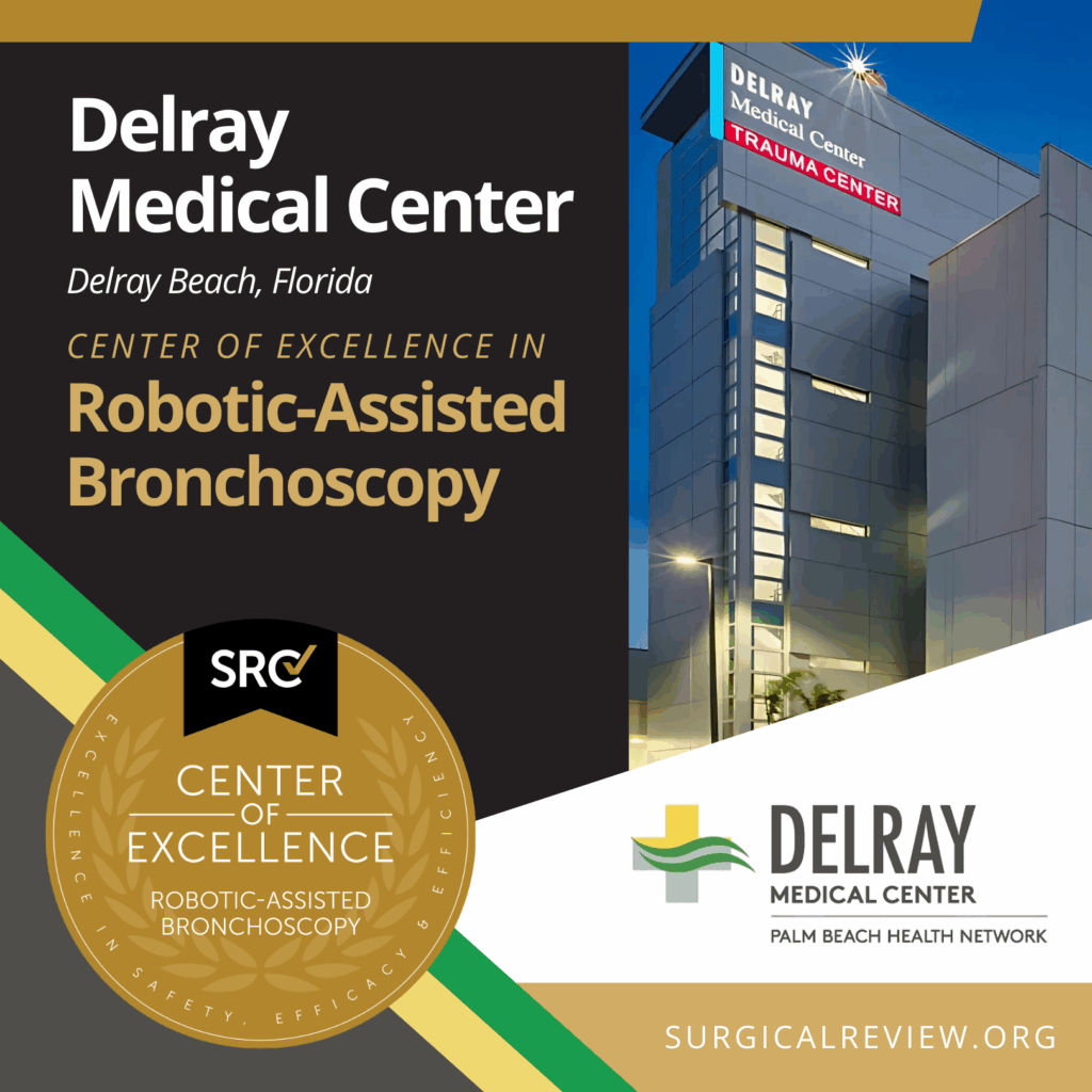 Delray Medical Center in Delray Beach, Florida has been accredited as an SRC Center of Excellence in Robotic-Assisted Bronchoscopy.