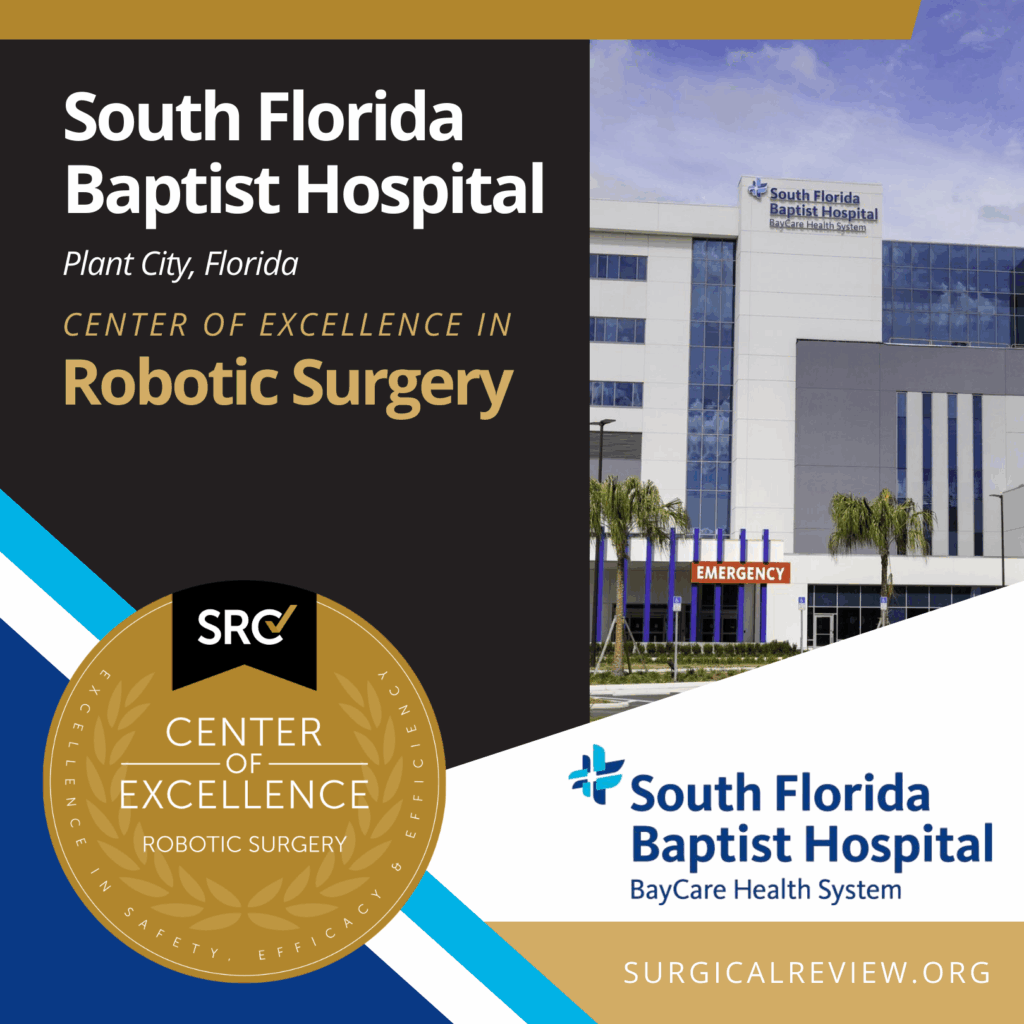 South Florida Baptist Hospital in Plant City, Florida has been accredited as an SRC Center of Excellence in Robotic Surgery.