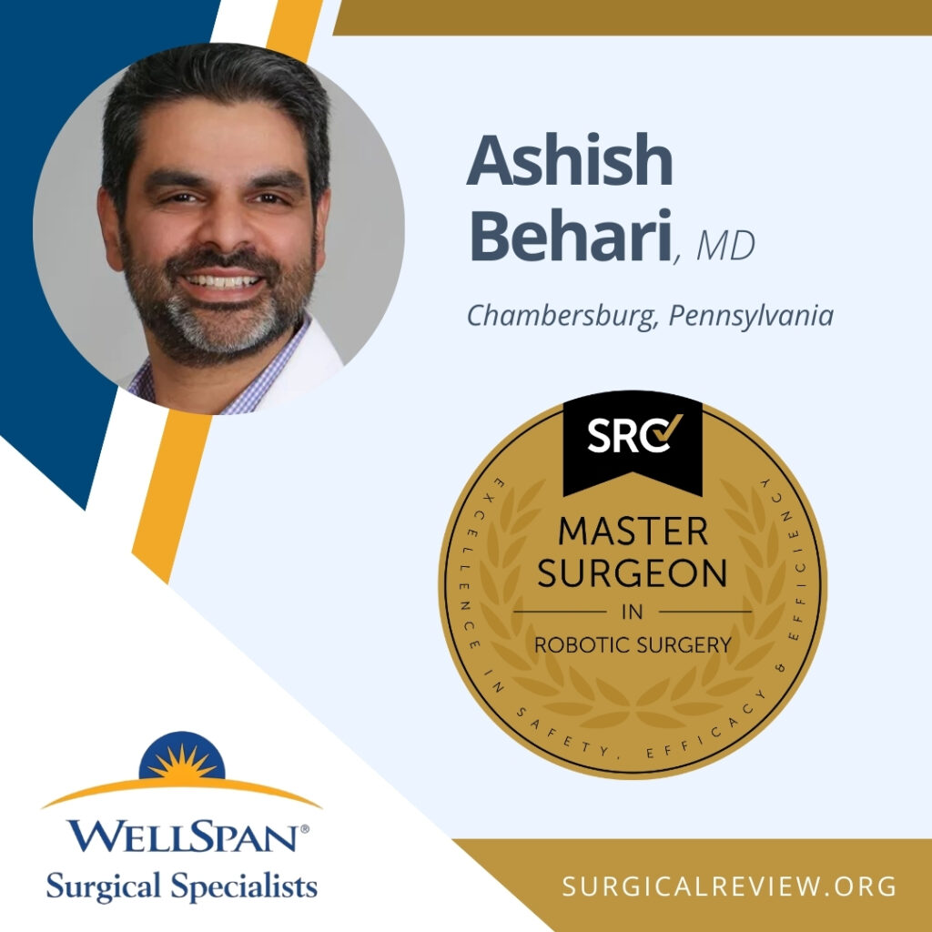 Ashish Behari, MD has been accredited as an SRC Master Surgeon in Robotic Surgery. Dr. Behari practices at WellSpan Chambersburg Hospital and WellSpan Surgical Specialists in Chambersburg, Pennsylvania.