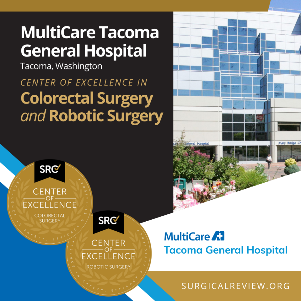 MultiCare Tacoma General Hospital in Tacoma, Washington has been accredited as an SRC Center of Excellence in both Colorectal Surgery and Robotic Surgery.