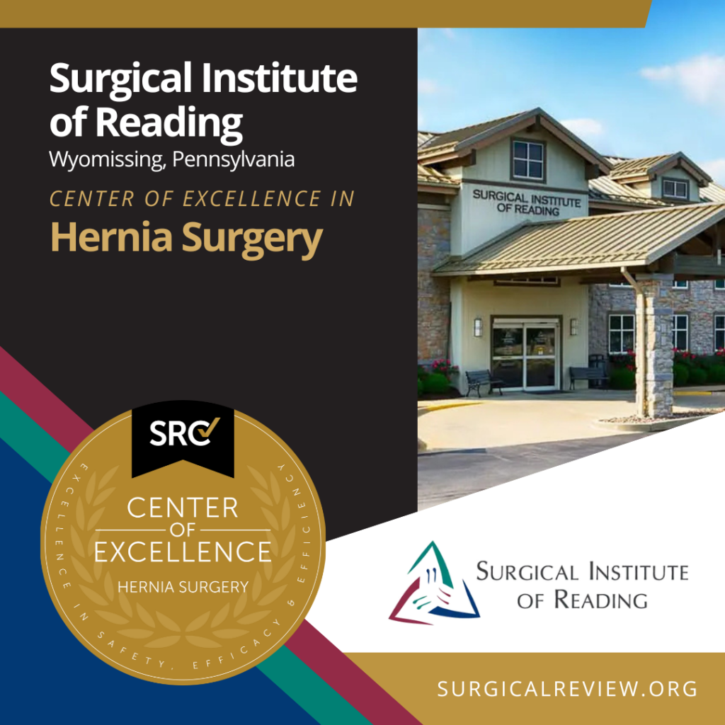 Surgical Institute of Reading in Wyomissing, Pennsylvania has been accredited as an SRC Center of Excellence in Hernia Surgery.