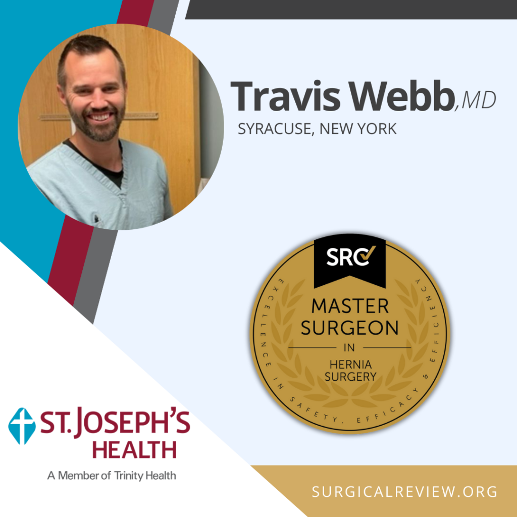 Travis Webb, MD has been accredited as an SRC Master Surgeon in Hernia Surgery. Dr. Webb practices at St. Joseph’s Hospital Health in Syracuse, New York.