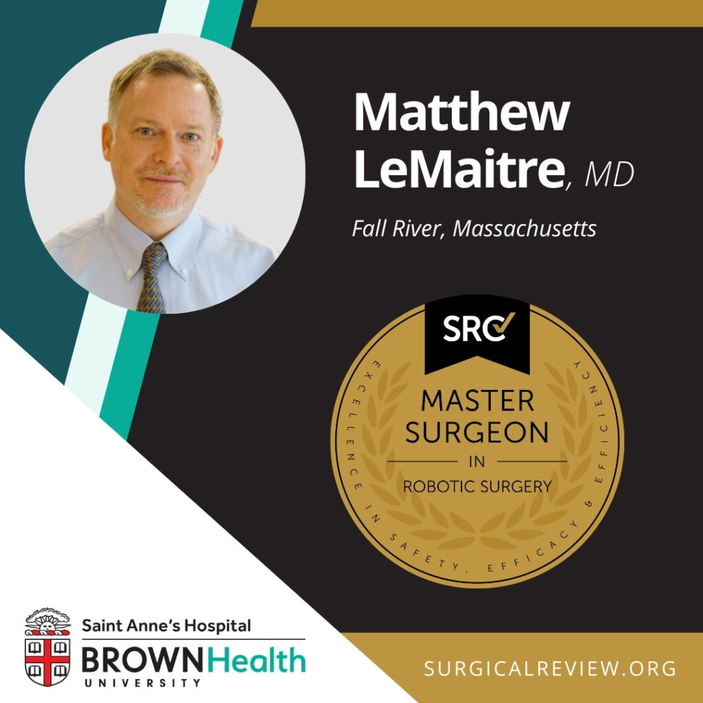Matthew LeMaitre, MD has been accredited as an SRC Master Surgeon in Robotic Surgery. Dr. LeMaitre practices at Saint Anne’s Hospital.