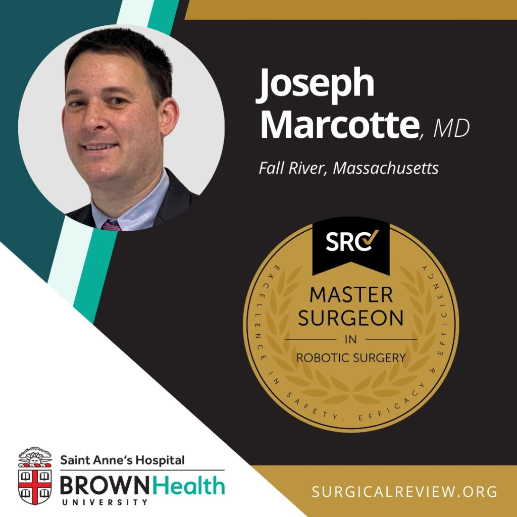 Joseph Marcotte, MD has been accredited as an SRC Master Surgeon in Robotic Surgery. Dr. Marcotte practices at Saint Anne’s Hospital.