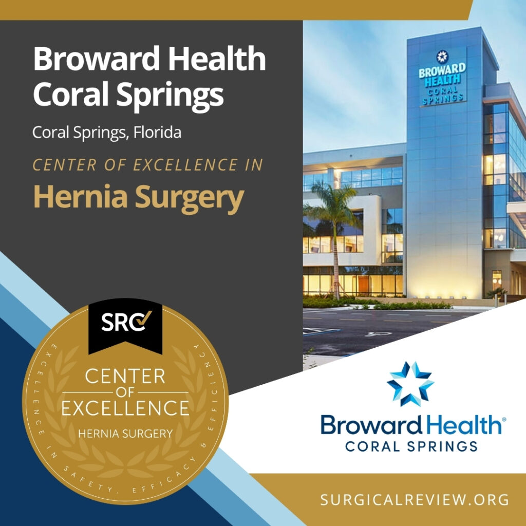Broward Health Coral Springs in Coral Springs, Florida has been accredited as an SRC Center of Excellence in Hernia Surgery.