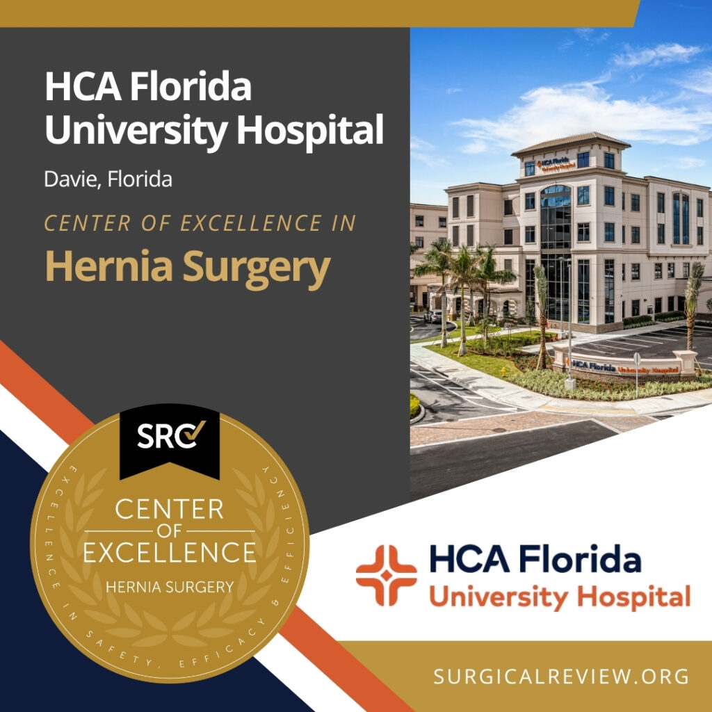 HCA Florida University Hospital in Davie, Florida has been accredited as an SRC Center of Excellence in Hernia Surgery.