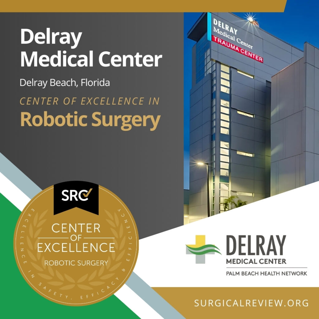 Delray Medical Center in Delray Beach, Florida has been accredited as an SRC Center of Excellence in Robotic Surgery.