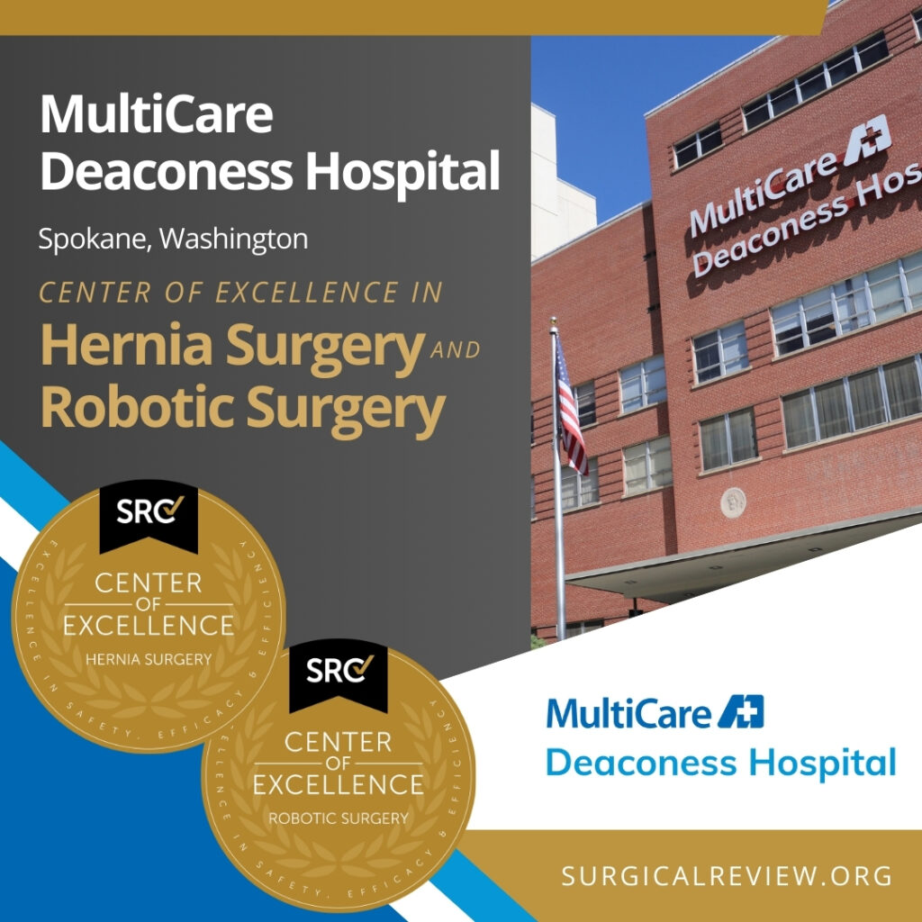 MultiCare Deaconess Hospital in Spokane, Washington has been accredited as an SRC Center of Excellence in both Hernia Surgery and Robotic Surgery.