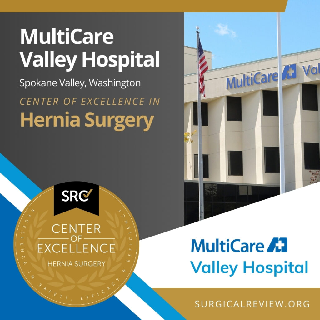 MultiCare Valley Hospital in Spokane Valley, Washington has been accredited as an SRC Center of Excellence in Hernia Surgery.